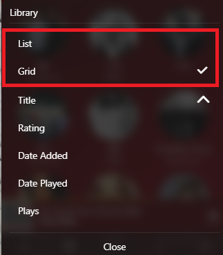View - The view can be changed in many of the library lists by pressing on the three dots in the top right corner, and selecting