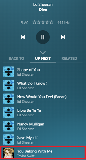 - On touch screen devices, you can see the play queue by swiping the player upwards.
