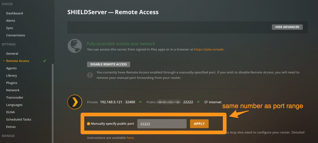 Hit apply. (might have too hit Enable Remote Access again) Done