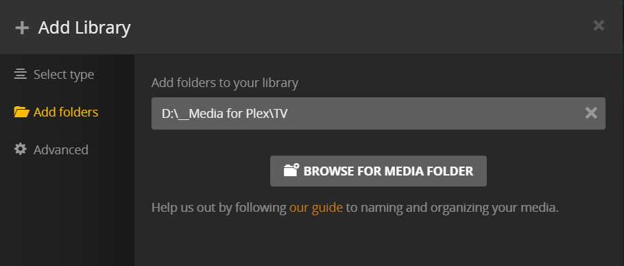 Each time I create the library, I just walk through the setup process, giving the library a name and then pointing it to the TV folder. I don’t modify any other settings. So, everything should be set to default settings.