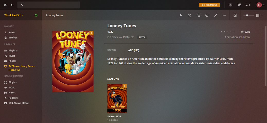 When I click on Looney Tunes, it looks like this: