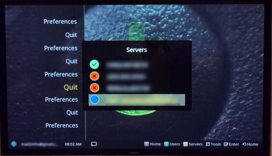 Ich habe eine Einladung und der Server ist blau angehakt, was bedeutet, dass ich zwar die Mediathek sehe, nicht jedoch das Medium abspielen kann, denn dann steht, “unable to connect to server”.