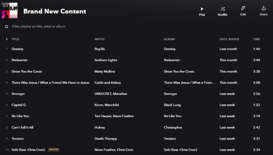 Same issue here. My problems started a few weeks ago. Many new singles become available on Tidal, but will not show up in Plex. I started a playlist in Tidal for all my favorite new releases, then check back in Plex every day to see if any show up. Occasionally one or two will sneak in, but the majority of my “Brand New Content” playlist won’t show up in Plex. Here are my top 10 tracks that I’m waiting for: All available & playable in Tidal proper, but none in Plex.