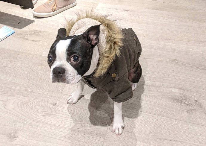 Boston Terrier puppy, he’s almost a year old now.