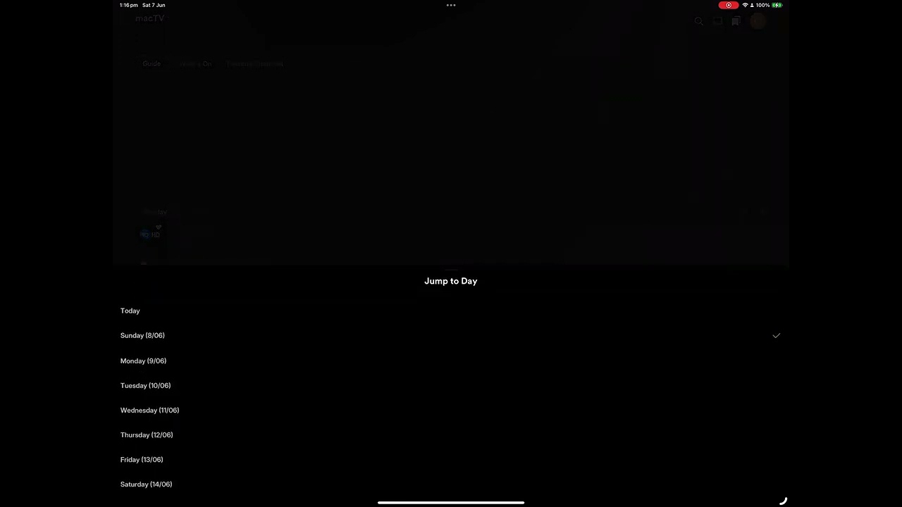 Yes, same for me too, can only see today’s guide from approx. 2 hours ahead, cannot see/view live TV, once you move past todays program guide then it goes blank! Works fine on my Mac with safari and Apple TV. (iPad Pro iOS app ver - 2025.17.0 (1082).