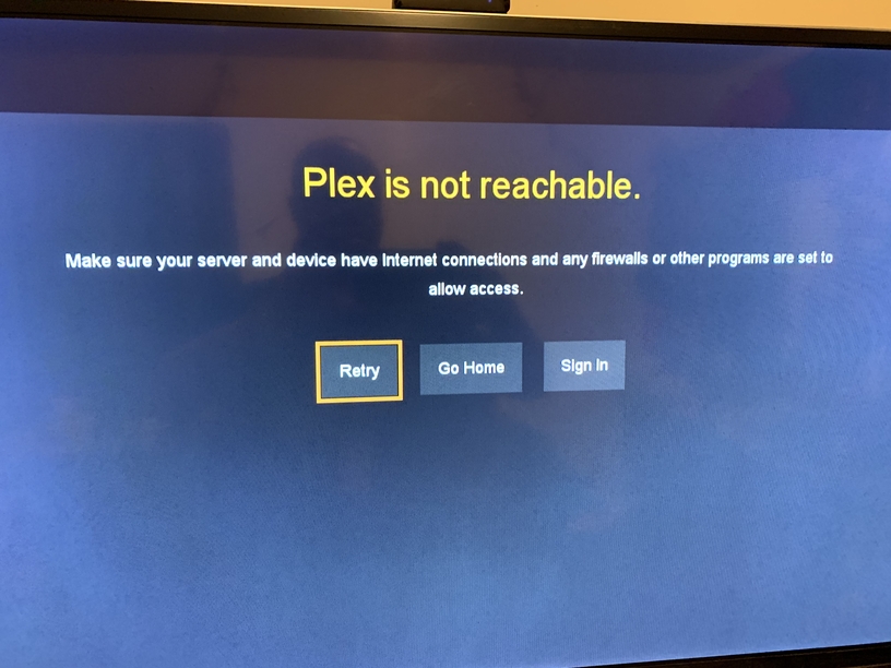 I have the exact same issue on 2 TVs. Server Version#:1.20.2.3402. Player Version#:3.13.14. Iâve attached pictures showing the error of Plex not being reachable, as well as the system info from both of my TVs. Also, Iâve connected one of the TVs to the hotspot from my cell phone to make sure it wasnât a problem with my network, and it still had the same issue. It seems there has been some type of update to this app that is causing this that needs fixed. As mentioned by MrCapgras, there is no option in the settings to change anything related to Enable Early Access.