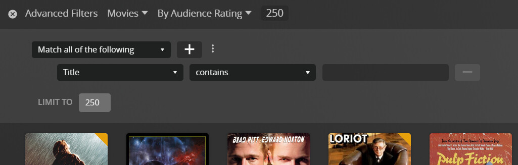 The idea is to create a collection of top 250 movies from my library based on rating, here is the issues faced :