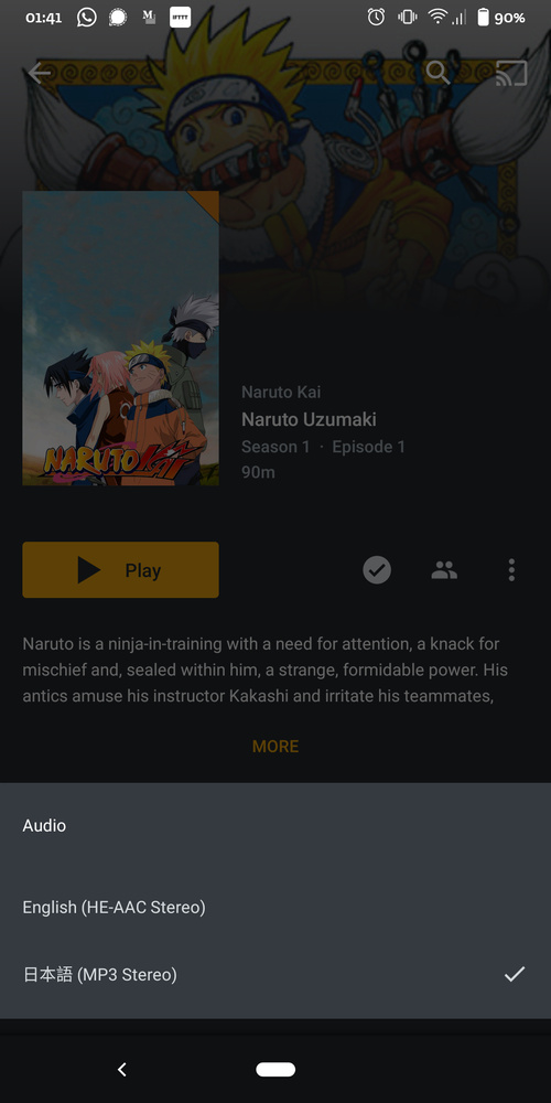 <Stream id="43242" streamType="2" selected="1" default="1" codec="aac" index="1" channels="2" language="日本語" languageCode="jpn" audioChannelLayout="stereo" profile="lc" requiredBandwidths="161,161,161,161,161,161,161,161" samplingRate="32000" title="Stereo" displayTitle="日本語 (AAC Stereo)" extendedDisplayTitle="Stereo (日本語 AAC)"/>