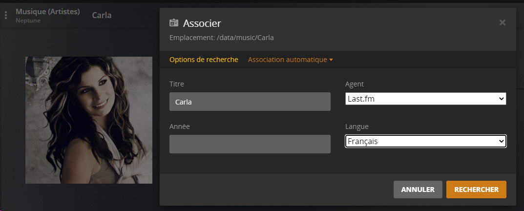 My Plex Server can’t find the “Carla” artist in Last.Fm database. The artist name is pretty simple : Carla. Here is her Last.Fm page : https://www.last.fm/fr/music/Carla