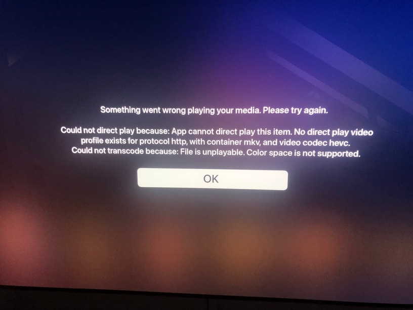 Problem: When playing DV files, it will transcode instead of direct play. It will say “App cannot direct play this item. No direct play profile exists for protocol http, with container mp4, and video codec hevc.” I get sound but no video. Just the spinning spike. The TV will show HDR in the corner instead of Dolby Vision. It worked before the last update (or last 2 update?).