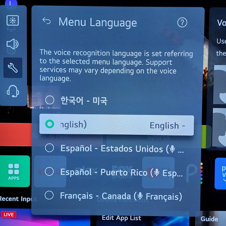 @OttoKerner The last screen shot I posted is the TV’s Menu Language setting (as shown in the setting panel title in the image.) The text below is reminding the user that the TV also uses the Menu Language setting for the TV’s voice recognition capability (which we never use.)