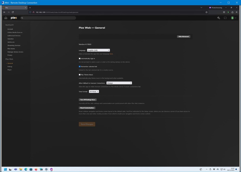 If I go to Mini (through RDP) and start Plex by right-clicking the PMS icon in my task bar, I get the repeated reloading like I showed in post 34. If I go to https://app,plex.tv, the page loads, but the servers shared with me are unavailable and my server is not present. In settings, I do not have the ability to claim my server and my libraries are not present. Do you have any advice? I have been a Plex Pass user for probably a decade or more and this is the worst state for my library.