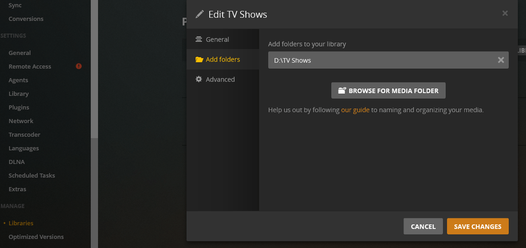 The pleg server is running on this system which has to hard drivers. Plex server is installed on the first drive and then I add two folders on the second drive.