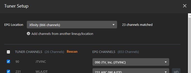 I’m not seeing the correct epg for the xfinity market I’m in. I should see the Xfinity - Brooklyn guide data for my zip code of 49249 but it will only show 3 stations having a match. If I change the zip code to 49201 (Xfinity - Jackson) the 3 stations will not show up with a match