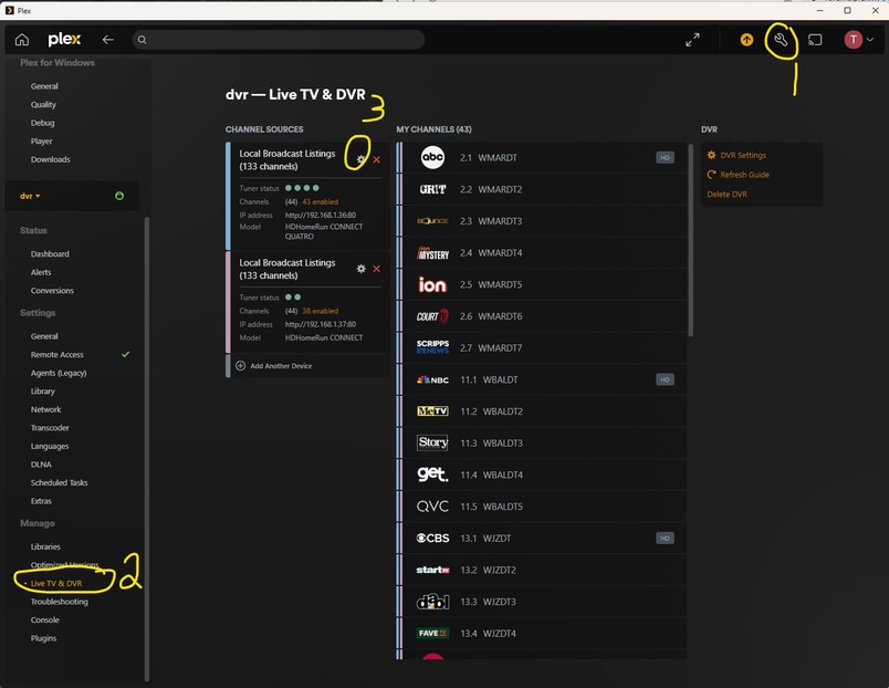 Interface will be the same as app.plex.tv/web both are perfectly fine for administering your server. Support pages can be found at the bottom of the page or https://support.plex.tv and has a category for Live TV & DVR.