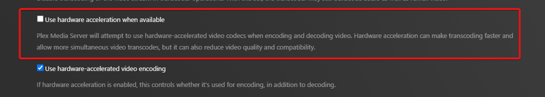 Such a bummer that this worked before but now it doesnāt That stated I did do CPU-based hardware transcoding and itās only a 5-10% CPU hit⦠so not that bad?