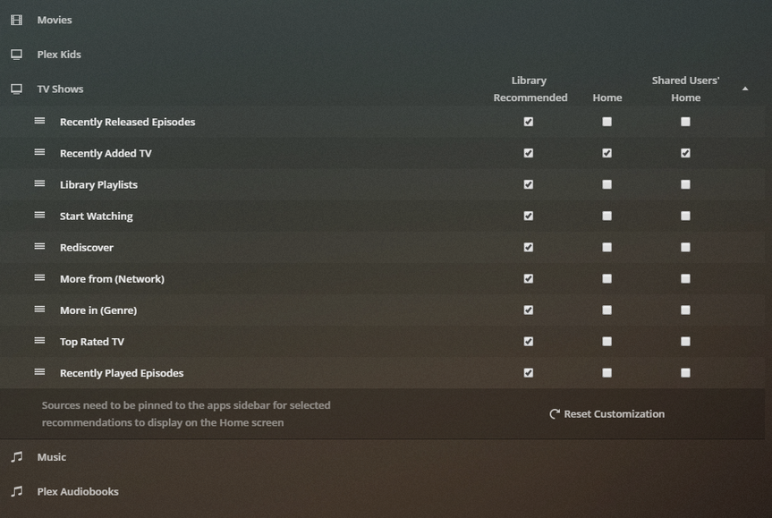 The tv show library that is problematic is no longer appearing on my home screen and the recommended page of the specific library displays ‘There was an unexpected error loading this library’ message. Clicking the ‘library’ option does display the entire library as intended. Collections also works as intended. This issue can be recreated on multiple device types and for shared users. I did get the page to load certain ‘recommended library’ sections by unchecking certain recommended library sections but this did not work for the players only on Web PMS. See screenshots for details.