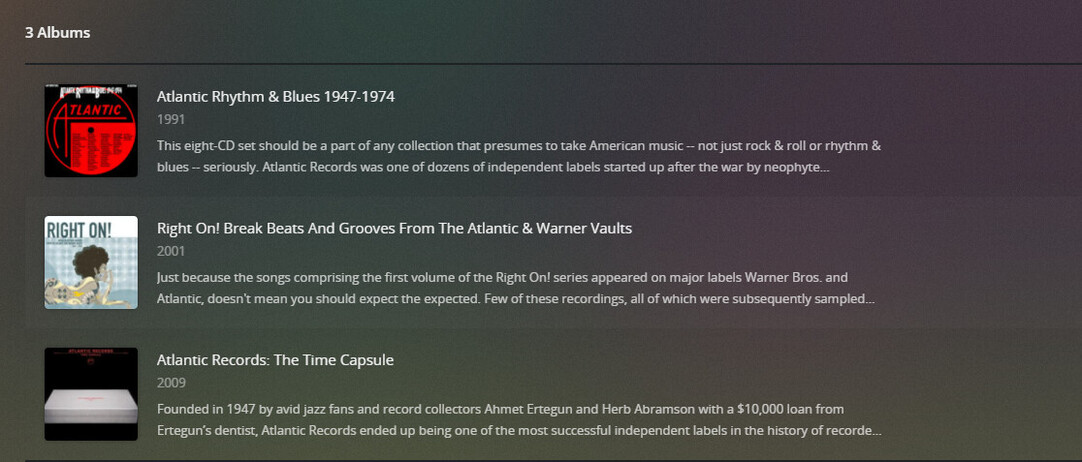 I’ve manually added album artists for a large number of albums in order to have them appear in certain “artists” when browsing by artist. Examples being Soundtracks, Video Games, Kids Music, Broadway, Disney, etc, etc. I know it’s an odd way to organize, but the family enjoys being able to go to a particular artist to hit all soundtracks for example.