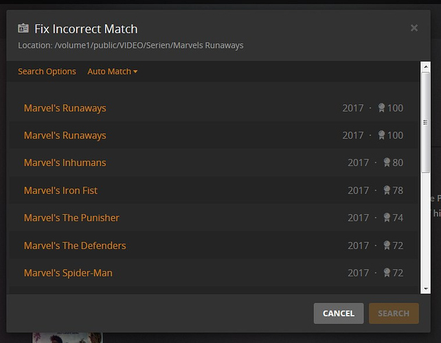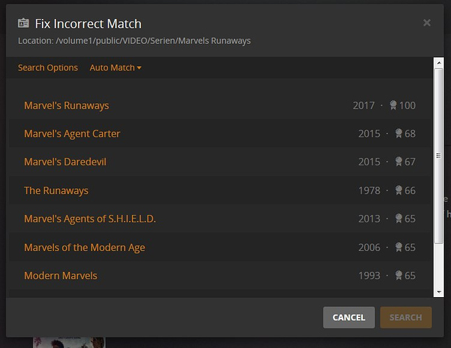 I’m experiencing some very strange behaviour from my PMS (running on a Synology DS218+). It will not display any metadata for season 1 of “Marvel’s Runaways”, no matter which client.