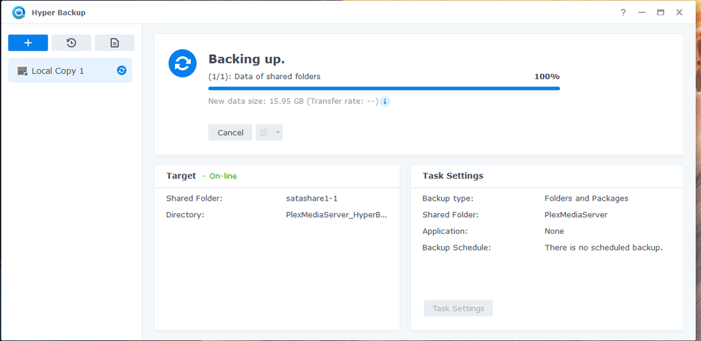 Data that I’m referring to, it’s the metadata, watch states, artwork that I had to download manually in the PlexMediAServer directory that need special handling. When I tried copying that folder manually the copy failed for some permissions issue. Hyperbackup solved that effortlessly.