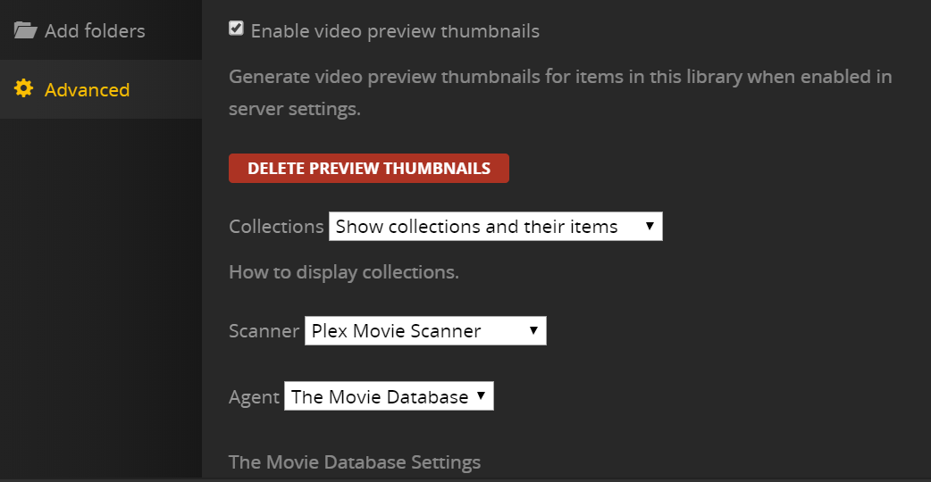 In the agent configuration above, Click onto the ‘cog wheel’ icon at the end of the line ‘Plex Movie’.