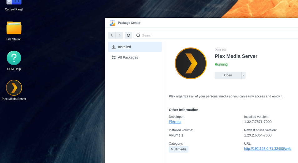 After upgrading my Synology DS720+ DSM version DSM 7.2-64570 Update 1 to listed PLEX server version, the desktop icon for PLEX disappeared and it also disappeared from the Main Menu. Reinstalling this PLEX version did not resolve the issue.