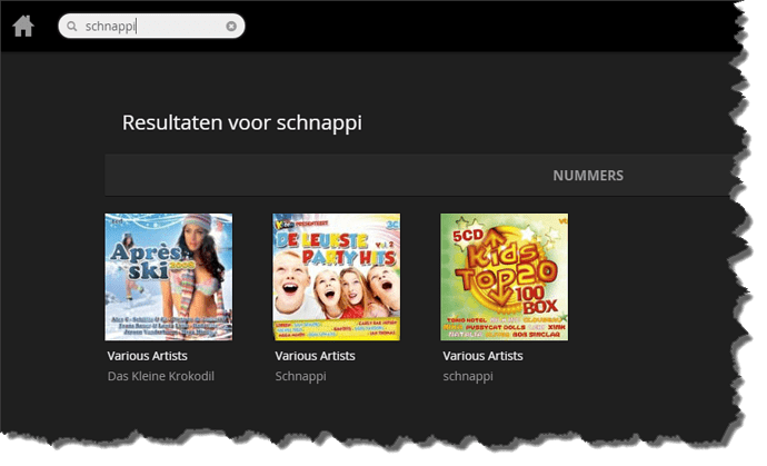 Secondary to that, the music search is slightly confusing. It only seems to be a filter within the selected area, so the results change depending on whether I have "track", "Artist" or "Album" selected. I'd quite like it to actually do a proper cross-section search when I press return and give me anything that matched the keyword in any indexed field.