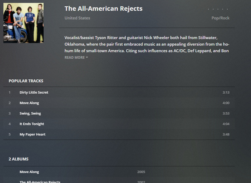 Also, in my test, the first song that came up was Coldplay’s Midnight. Checking Coldplay, that song is not on the popular list either. So I can’t reproduce getting popular tracks to be higher than other songs at the library level.