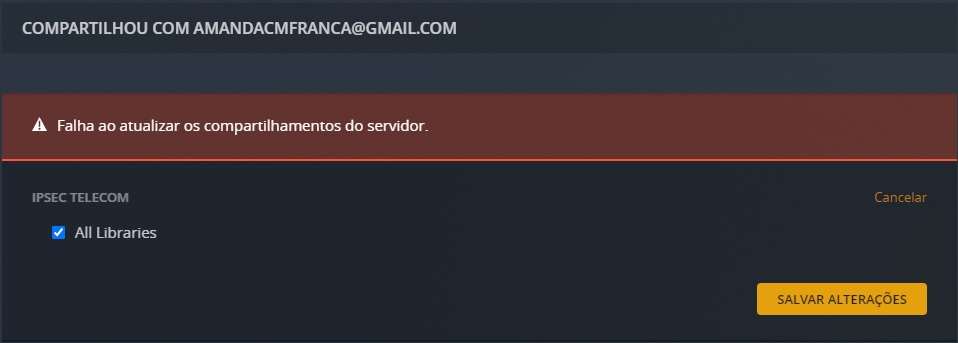 O email para o qual vc está enviando o compartilhamento da biblioteca tem que ter uma conta criada no plex. Você sabe se a pessoa já fez o cadastro gratuito?