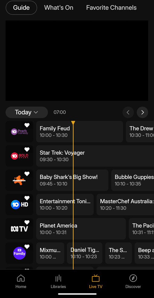 If I try to watch live tv early in the morning, I can’t because the guide is wrong. The programs listed as ‘now’ are actually the ones broadcast at 10AM.