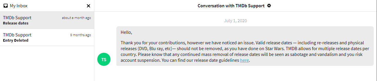 My ‘Repairing Career’ at TMDB ended after that message, but I’ll let you explain it to TMDB when you get one very similar to that…lol