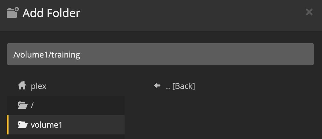 Well, on the Synology there are shares, not drive letters. I’ve set up every other library by pointing to the root of the share. For example, For my movies library I point to the video share, then select sub-folders under the video share. The training share is set up exactly the same: