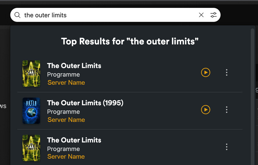 In the new search, it isn’t easy to tell movies or TV shows from the DVR from those in libraries on the server. For example, here is a search on The Outer Limits: