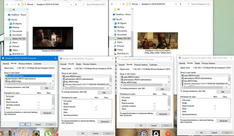 Deadpool is one movie I’ve seen that isn’t being imported. Deadpool 2 is fine. Far as I know naming is fine (and changing the name on Deadpool 1 doesn’t appear to have any effect). Permissions on folders and individual files are identical… both are in the same parent location.