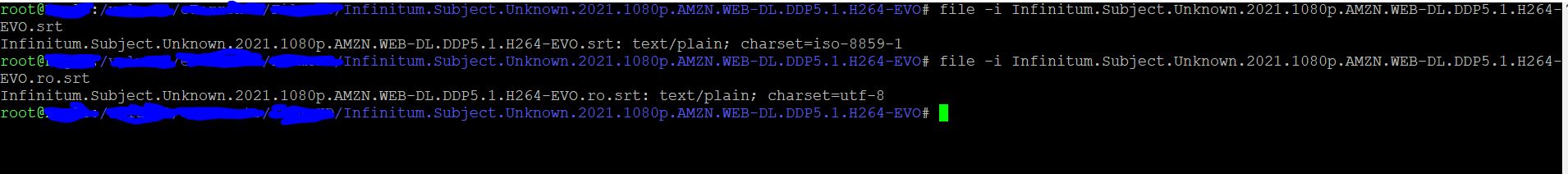 uconv -f iso-8859-1 -t utf8 -o Infinitum.Subject.Unknown.2021.1080p.AMZN.WEB-DL.DDP5.1.H264-EVO.rou.srt Infinitum.Subject.Unknown.2021.1080p.AMZN.WEB-DL.DDP5.1.H264-EVO.srt