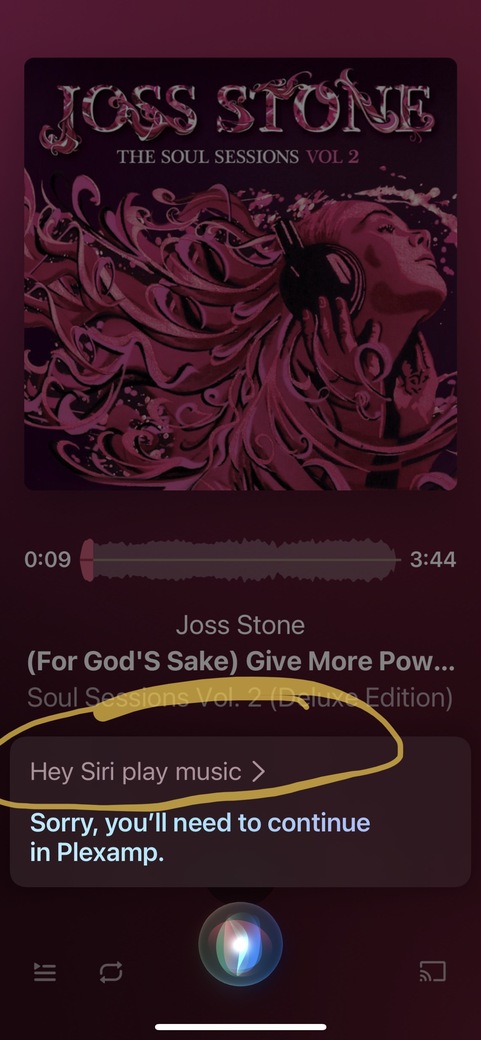 So, just installed iOS 14.5 and told Siri to “Play Music”, it then came up with the list of apps and Plexamp was listed. But after selecting Plexamp, Siri replies with “you have to continue in Plexamp” and all future “play music” commends get the same reply.