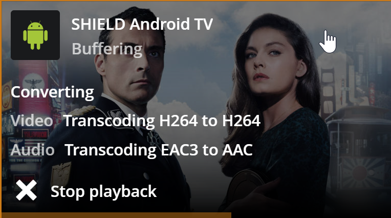 so with the shield connected to the tv, which does not support the audio stream, the shield knows this, which tells the plex server to convert the audio.