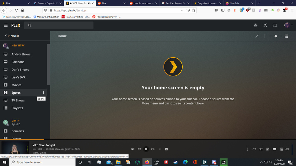 here is another screenshot of my server list, my server (HTPC), NOT new htpc, which should be at the top of this list, vanished. But you can see I started the video from the server in another tab, so its still open in this one without the server the video is being played from being listed at all.