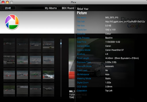 The latest Picasaweb.0.2.zip bundle is available to plugin devs via campfire. Hopefully not long now before this is ready for the masses. Unfortunatley I can’t place the new .zip file onto the Wiki as it will only allow files of up to 2.5mb in size. As this plugin makes use of very pretty custom icons for all the different contextual items you can view the .zip file is unfortunately 7.5mb in size.
