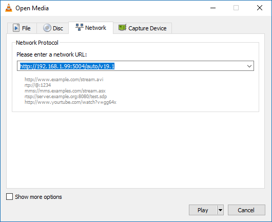 I tried the network stream through VLC. Media > Open Network Stream > Network Tab > Stream > HTTP > H.26 + MP3 (MP4) … But I get errors. Not sure if I have parameters set correctly. I’ve never done that and just went by what seemed logical.