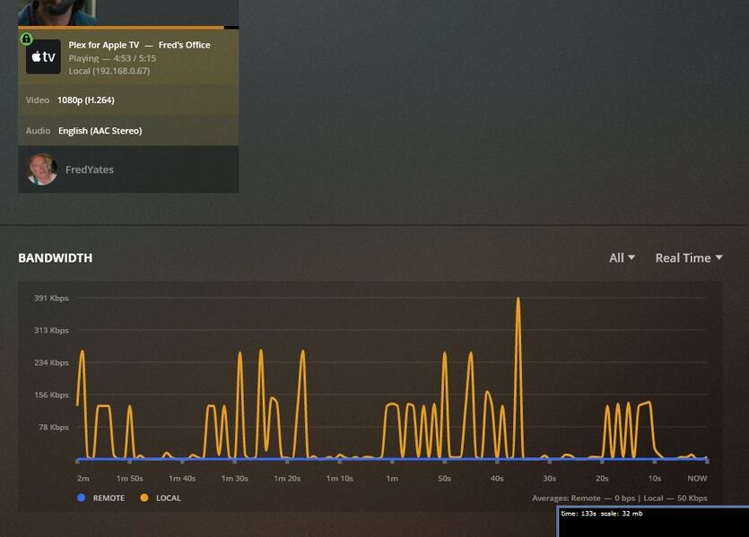 As an aside both the Plex Info screen and Media show the bit rate = 901kbps, while Dashboard > Now Playing show 2Mbps