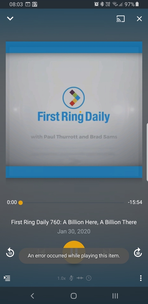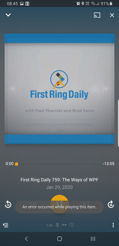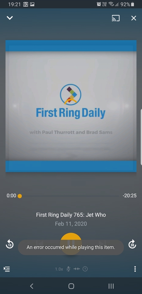 Since Plex for Android Beta 7.27, and continuing in 7.28 even after full offline content delete + full app uninstall and re-install, I just get ‘An error occurred while playing this item’ for any podcast episode played via normal Podcasts section which has its episode already successfully downloaded.