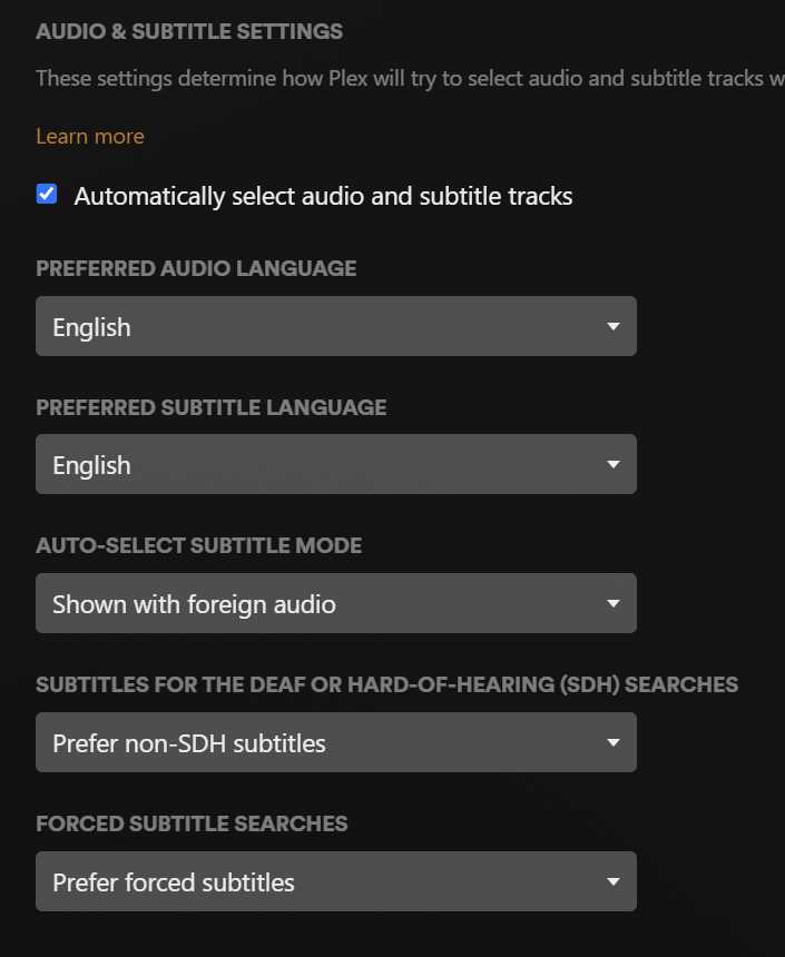 Regarding you question about special text vs metadata, Plex will look at the forced track flag and hearing impaired flag from a MKV and display âforcedâ or âsdhâ for the subtitle based on that. See this example of 2 PGS subtitles in a movie with one having the hearing impaired flagged checked and Plex includes SDH next to the language.