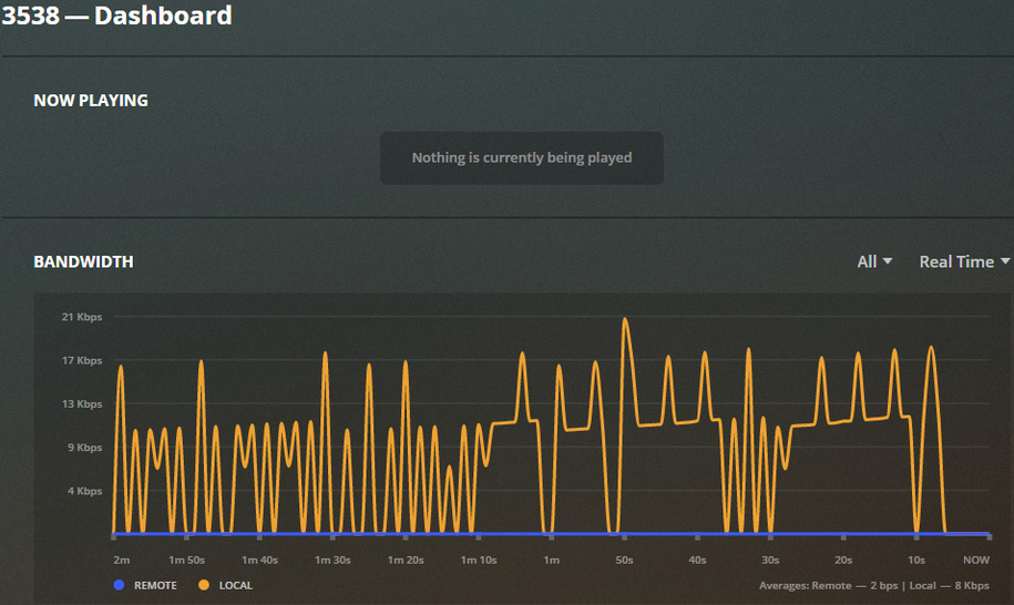 Your first image showing 8 kbps looks like just background. This could be 1 or more Plex devices just talking back to the server checking for new information, etc.