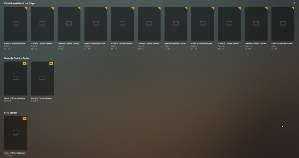 2.) Die Mediathek “Serien” erkennt die Folgen der Staffel nicht und auch hier fehlt die richtige Zuordnung (Beschreibung, Cover usw.)