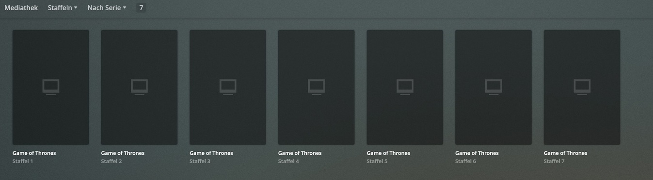 Und stelle vor allem deine Mediathekenansicht von “Staffel” auf “Serie” um.