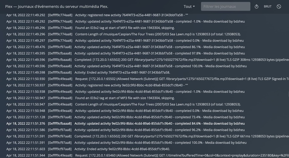 Running Plex Media Server on docker on via the Linuxserver image, I’m trying to transfer ~900 songs to my phone and it’s going really slowly. Approximately 15-20 seconds per song so far. They’re all 320kbps mp3 files, so approximately 10-15MB per file. I have a 2000Mbps down/800Mbps up fibre connection at home, my server is plugged into a 2.5Gbps ethernet port on my router, and my phone is 2 meters away (iPhone 12 Mini). I did a speedtest to confirm my internet connnection isn’t the issue: