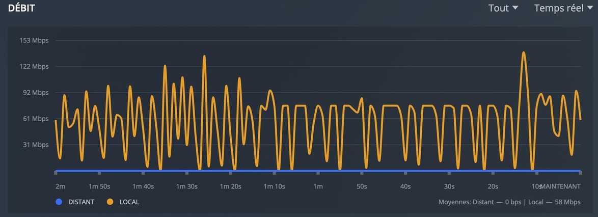 On the server, as you can see on the bandwidth graph, it does seem to properly detect that my phone is on the local network: