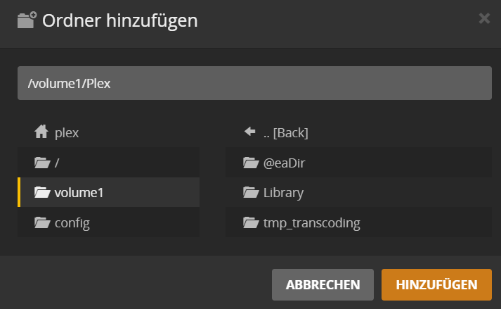 Ich habe dann also die Serien in einen separaten Ordner auf der externen HD verschoben. Als ich den Ordner im Media Manager aufnehmen wollte, hat Plex stundenlang gescannt, aber keine Serien gefunden (es befanden sich nur 2 Folgen in dem Ordner). Ich habe dann den Media Manager neu gestartet. Zwar ist der Serien-Ordner nun vorhanden, allerdings befinden sich keine Serien darin.