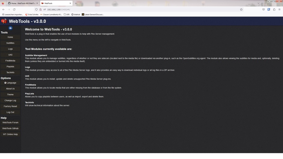 Only Webtools are shown in Plugins section of plex server at 32400.